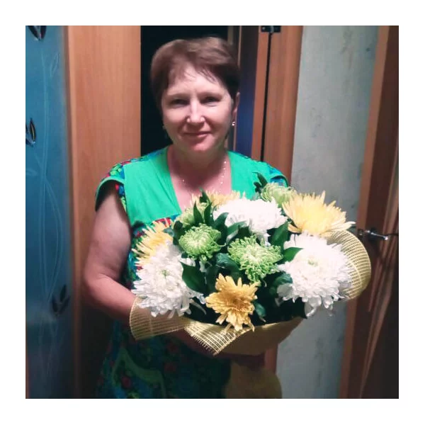 Огромное вам спасибо за проделанную работу. Получатель был в восторге и от самой доставки и от букета. Очень красивые хризантемы, красиво оформлены. Я Очень довольна!!!! СПАСИБО!!!